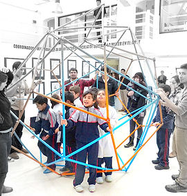 Estos sólidos quedan expuestos varios días en el hall de la escuela donde ellos van observando la reacción e interacción de sus habitantes ante su presencia, y finalmente han invitado a un grupo de niños estudiantes de tercero básico de la escuela del frente de la universidad para mostrarles el trabajo realizado e invitarlos a la ocupación y al juego entorno de los espacios construidos.